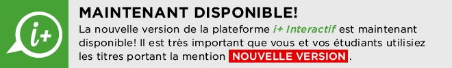 Chenelière Éducation offre gratuitement dès maintenant à vos étudiants toutes les ressources numériques disponibles sur notre plateforme i+ Interactif. Nous souhaitons ainsi soutenir vos initiatives et vos efforts à mettre en place les activités d’enseignement à distance vous permettant de poursuivre et de terminer la présente session d’hiver.